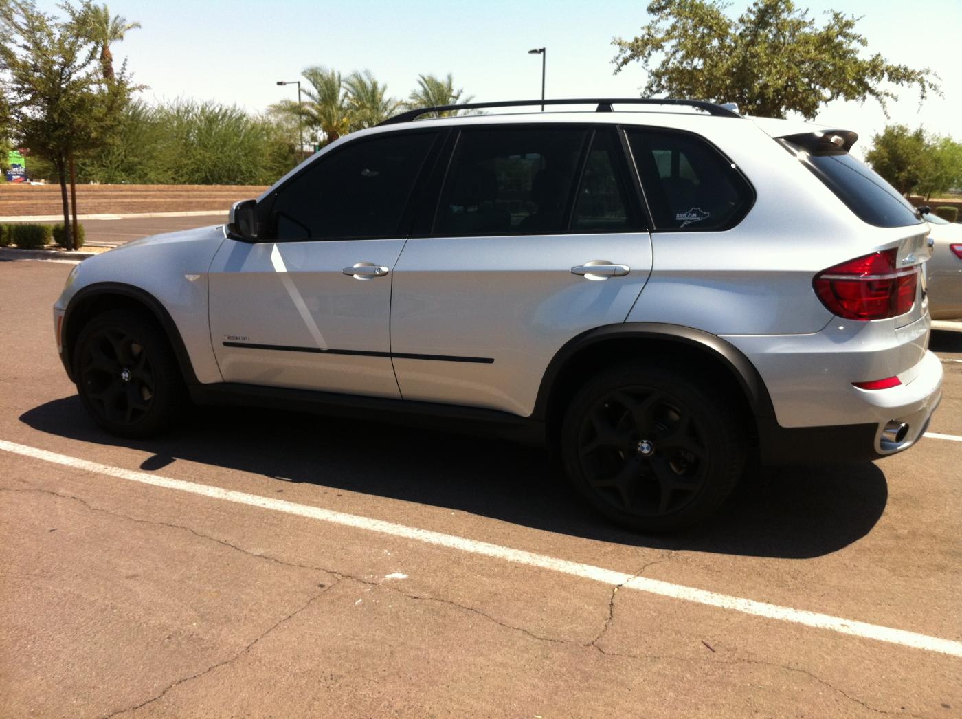 Hey all X5 owners. I was thinking of getting my X5 wheels powder coated or painted after I got it but honestly when I get rid of this thing in a few years I'm not sure if it will change the selling price. So I decided to try the Plasti Dip. I've had it on for 5 months in Arizona heat and its still looking good. Thought I'd share for those thinking about it. I like it as its reversible, easy to apply and most of all inexpensive. Thoughts?