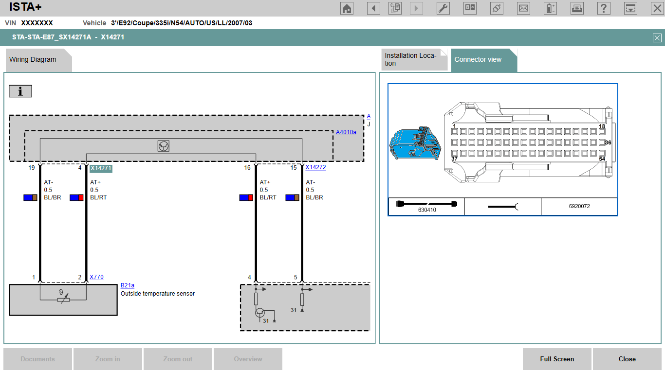 Attached are ISTA ScreenPrints for 3/2007 build 335i Ambient Temp Sensor circuit, Connector Locations, & Connector Views.