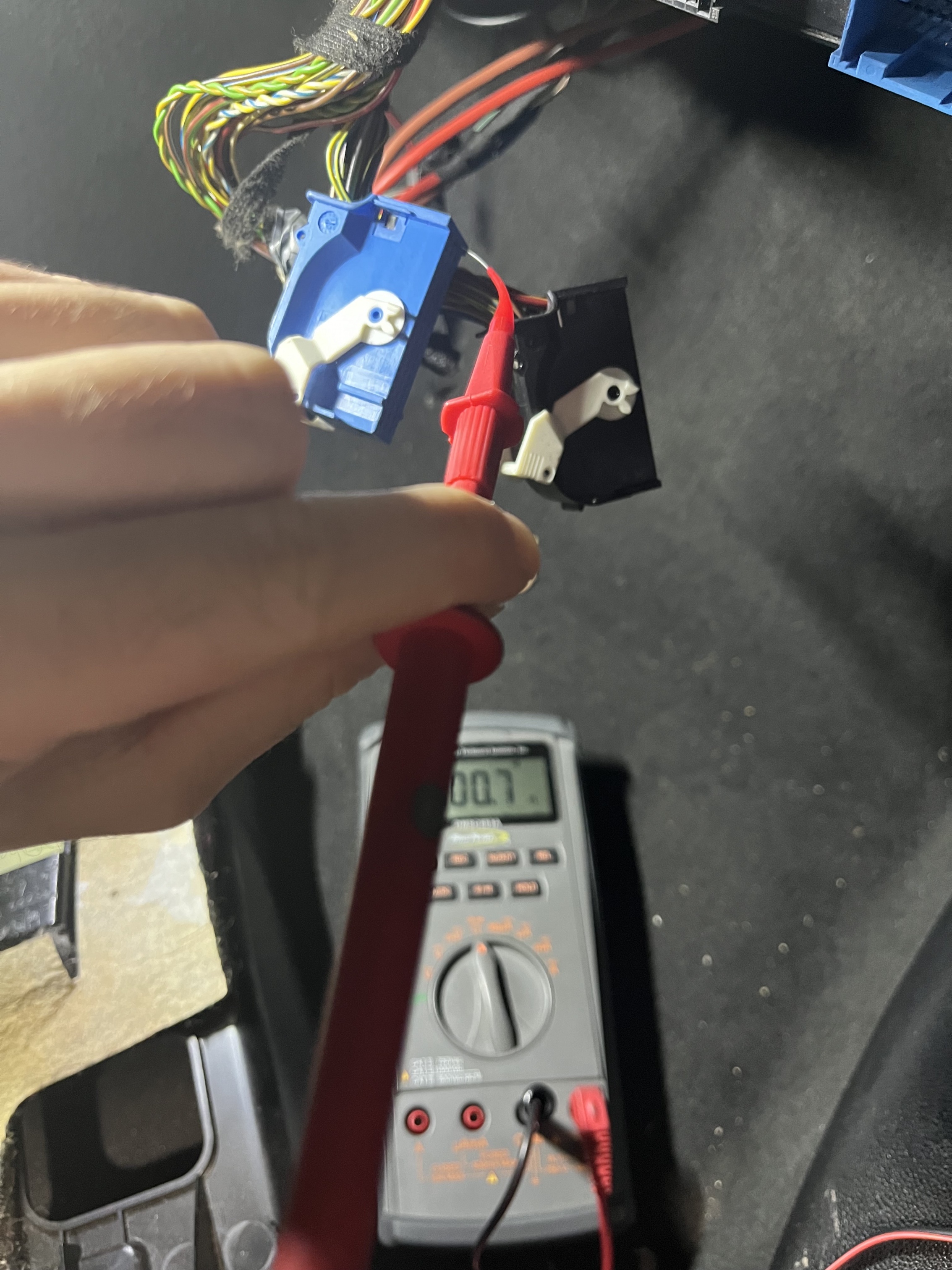 Also for me apparently X14271 is the blue connector on the right side and X14272 is the black connector on the left side for some reason. As for the suspecting the red/blue and blue/brown are contacting each other I did test that earlier today by having X14271 unplugged and checking continuity at pin 1 and 2 at X770, I even checked continuity at pin 4 of X14271 to pin 1 of X770 and vice versa with pin 19 on X14271 to pin 2 on X770, in which all these tests read open on my meter to confirm that the wires aren?t contacting each other. The picture I attached is testing pin 19 of X14271 to pin 1 on X770 which shows perfect continuity to confirm the blue/brown is perfectly fine. With KOEO both pins at X770 read 4.1 volts, so I?m thinking so far that the wiring is fine and I just need to let the -40 degree reading on my cluster reset itself by driving around for a bit. I?ll keep you updated and thank you again!!!