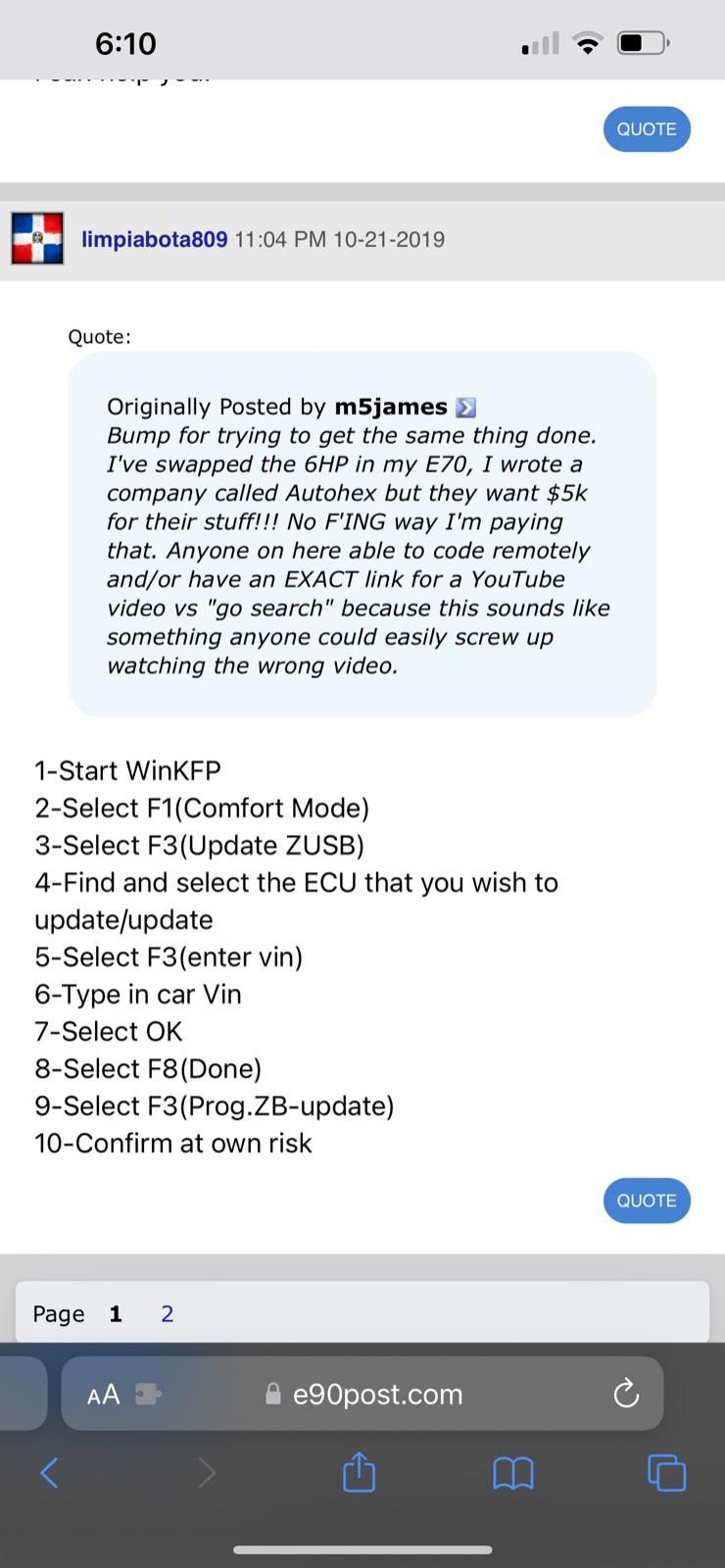 I have figured out what is supposed to be done but I am running into error 209 UIF cannot be read with WinkFP when I try to program new vin. Daten was just updated version 67.1 e89. Diag protocol is BMW-FAST. I have Force program in comfort mode checked UIF write after data, after program and in comfort mode all checked . I Also have a battery supply to the car. Inpa reads UIF just fine. Thank for the help !