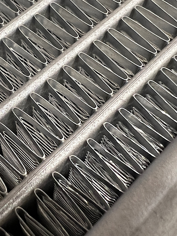 And sorry just to be clear you’re referring to the German-made BMW radiator, yeah? I guess it would make sense that the Chinese manufacturers just reverse engineered the original part (and would also explain why the Mahle Behr unit, made in South Africa, has many differences compared to the Modine unit). I dunno… My replacement BMW rad is still going strong after three years. I’ve attached a couple pics showing difference between fins on Modine (first pic) and Mahle Behr (second). The Mahle are made out of damp tracing paper and bend when you look at them; the Modine fins are thicker (I measured with a caliper but can’t remember specifics) and are a completely different design. I’d be curious to see some detail shots of the Chinese ones. No surprise they appear to be dead ringers for the original part—I’d just be surprised if they replicated everything about it.