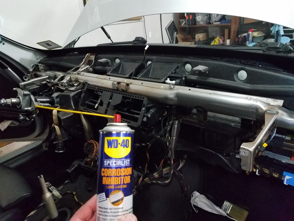 I kneeled on the passenger seat and broke the occupancy sensor while I was playing twister with the dash. Grrrrrrrrr, I just put those new leather seats in there a couple weeks ago, couldn't have broke the old manual seat. The BMW approved repair is to replace the foam on the seat bottom that includes the sensor and the heating element, for over $800 just for the part. I could put a emulator on there but that would gnaw at my OCD. For now I put the old manual vinyl seat back in, that has heat that's all Mrs. 3P cares about. In the winter when project list is shorter I'll swap the cushion from the manual seat. Now the saddest part of the saga, the squeak is still there same as before . At least it wasn't all in vain, the HVAC box was toast it needed to be replaced but now I gotta hunt elsewhere for the squeak. Tomorrow it goes back on the Quickjack to get the sway bushings lubed and anything else I can check like shields and stuff underneath, I think I ruled out the dash time to cast a wider net. |