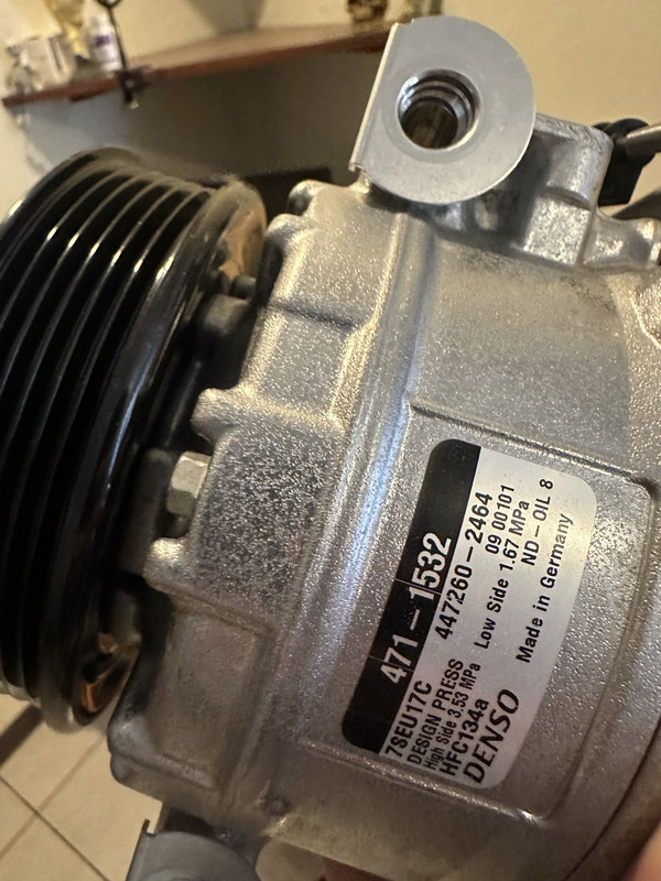 Well, my 330i's A/C compressor seems to be coming to its end after 20 years. It makes a noise (humming noise) when the A/C is ON, and the noise increases/decreases along with the RPMs. If I turn the A/C OFF, the noise disappears, so as I understand it, that rules out the bearing as a possible cause, which I replaced in 2021. When the bearing failed, it sounded like a helicopter regardless of whether the compressor was ON or OFF. Air still comes out of the vents cold, but not as cold as it used to be. I haven't even bothered measuring pressures with gauges because of that noise, which indicates a problem with the compressor. Has any of you guys had a similar experience? I would also like some advice regarding the brand. Is it the same situation as with the evaporator — that if it came with Valeo you must buy Valeo, or Denso if that were the case? I saw a Denso on RockAuto for $365, but it says "w/clutch" and AFAIK these compressors don't have a clutch. What do you guys think? |